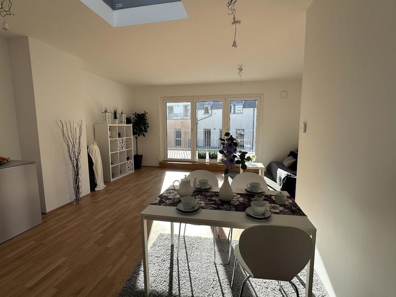 Zur Vermietung Erstbezug: Modernes Townhouse mit hochwertiger Ausstattung Raumaufteilung: Einganseben: Vorraum Büro / Atelier mit Ausgang auf die Terrasse und den Garten Abstellraum unter der Treppe Bad mit Dusche, WC, Waschbecken Obergeschoss: Vorraum auch als Büro nutzbar 2 Zimmer Bad mit Wanne, Waschbecken , Handtuchwärmer, Waschmaschinenanschluss extra WC mit Handwaschbecken. Dachgeschoss: Wohnküche mit Ausgang auf die Terrasse Abstellraum extra WC mit Handwaschbecken. Garagenplatz in der hauseigenen Tiefgarage: kann ab ? 148,-- angemietet werden Die Wohnung wird auf 5 Jahre befristet vermietet. Die Niedrigenergiebauweise sorgt für leistbare moderate Heiz- und Warmwasserkosten: Deckenheizung und -kühlung Wärmepumpenanlage mit Geothermie (Tiefenbohrungen) und Sonnenkollektoren Wohnen beim Casino-Park Besichtigungen sind gegen Voranmeldung ab sofort möglich ? wir freuen uns über Ihren Anruf!!! Das Projekt Die WIEBE Wiener Bauträger- und EntwicklungsgesmbH hat in der Linzer Straße eine neue Wohnhausanlage mit 34 Eigentumswohnungen samt dazugehöriger hauseigener Tiefgarage mit 23 Stellplätzen errichtet. Wohnungsgrößen 2 - 4 Zimmer-Wohnungen, für jede Lebenslage ist etwas dabei, ideale Freiräume wie Loggia, Terrasse oder Garten. Die Details Ein straßenseitiges Wohngebäude mit 31 Wohnungen mit 2-4 Zimmern, zusätzlich wird ein Einzelhaus mit 4 Zimmern, sowie ein Doppelhaus mit zwei 4-Zimmer Maisonette-Wohnungen und integrierten Büros errichtet. Die Wohnungen werden Schlüsselfertig übergeben. Das Angebot wird den unterschiedlichsten Ansprüchen mehr als gerecht: geschmackvolle Ausstattung, die Verwendung von erstklassigen Materialien durchdachte Raumaufteilung und Parkettböden in den Wohnräumen. Sämtliche Wohnungen verfügen über attraktive Freiflächen wie Balkone oder Terrassen sowie nette Eigengärten im Erdgeschoß. Die Fenster haben einen außenliegenden Sonnenschutz in Form von Raffstores. Die Bedienung erfolgt mittels Funkfernbedienung. Die barrierefreie Erreichbarkeit der Wohnungen vom Keller bis zur jeweiligen Wohnetage wird durch die Liftanlage ermöglicht. Die Infrastruktur Das Projekt bietet eine sehr gute Infrastruktur durch Nahversorger des täglichen Bedarfs in der unmittelbaren Umgebung, zahlreiche Geschäfte entlang der Hütteldorfer Straße bzw. die Shoppingmall Auhofcenter mit seinem großen Angebot an Gastronomie und Entertainment; die Volksschule in der Hochsatzengasse liegt in Gehweite, höhere Schulen sind mit Öffis leicht zu erreichen. Eine ausgezeichnete öffentliche Verkehrs-Anbindung ist durch die Straßenbahnlinie 52 gegeben, welche sich fast direkt vor der Haustüre befindet, ebenso die Autobuslinie 47A, die Sie zur U4-Station Ober St.Veit bringt. Ein paar Schritte weiter gelangt man zur Linie 49, die wiederum eine Anbindung an die U3 ermöglicht. Auch die A1-Autobahnauffahrt Auhof liegt nicht weit entfernt. Der Zeitplan: Die Wohnungen können kurzfristig bezogen werden.