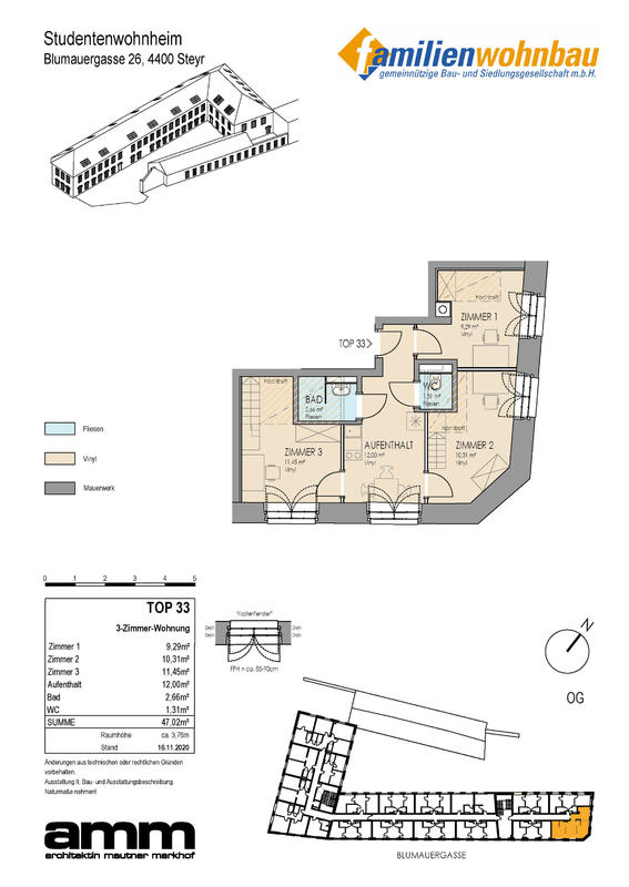 4400 Steyr, Blumauergasse 26 - Studentenwohnheim