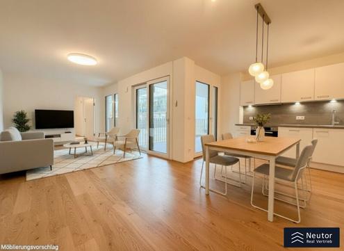 Diese charmante 3-Zimmer-Wohnung mit Balkon im 1. Obergeschoss bietet auf ca. 68,61 m² ein durchdachtes Raumkonzept mit Wohlfühlcharakter. Die helle und einladende Atmosphäre macht sie ideal für Singles oder Paare, die eine Kombination aus Komfort und Funktionalität suchen. Eckdaten: Wohnfläche: ca. 68,61 m² Zimmer: 3 Balkon: ja - innenhofseitig, ca. 11,96 m² Küche: Einbauküche - offene Wohnküche Badezimmer: 1 - mit Badewanne und WM Badezimmer Verbau vom Tischler: ja WC: ja - separat mit Handwaschbecken Stock: 1. Etage Heizung: Fernwärme, Fußboden Fahrradraum: ja Keller: ja Lift: ja Beschreibung: In diesem exklusiven Neubauprojekt, im 1. Stock gelegen, präsentiert sich die charmante 3-Zimmerwohnung mit Balkon im Zweitbezug von ihrer besten Seite. Sie betreten die Wohnung über einen Vorraum, welcher ausreichend Platz für eine Garderobe bietet - von hier aus erreichen Sie das verflieste Badezimmer mit hochwertigem Tischlereinbau, Badewanne sowie das separate WC. Der lichtdurchflutete Wohn-Essbereich überzeugt durch seine bodentiefen Verglasungen und bietet eine hochwertige Einbauküche, welche keine Wünsche offen lässt. Die Schlafzimmer wurden durchdacht angelegt und können für einen erholsamen Schlaf mit dem außenliegenden Sonnenschutz abgedunkelt werden. Als absolutes Highlight gilt der Balkon, welcher bei angenehmen Sommerabenden zum Verweilen einlädt. Kosten: Monatliche Bruttomiete: € 1.770,00 inkl. Betriebskosten und gesetzlicher USt. Kaution: 3 BMM Provision: / Abwicklungspauschale Hausverwaltung: € 249,00 Wir dürfen gem. § 5 Maklergesetz darauf hinweisen, dass wir als Doppelmakler tätig sind und ein wirtschaftliches/familiäres Naheverhältnis zu unseren Auftraggebern besteht. Das wirtschaftliche Naheverhältnis ergibt sich aus regelmäßiger geschäftlicher Verbindung. Irrtum vorbehalten. Wir weisen darauf hin, dass zwischen dem Vermittler und dem zu vermittelnden Dritten ein familiäres oder wirtschaftliches Naheverhältnis besteht. Der Immobilienmakler erklärt, dass er entgegen dem in der Immobilienwirtschaft üblichen Geschäftsgebrauch des Doppelmaklers einseitig nur für den Vermieter tätig ist.Infrastruktur / EntfernungenGesundheitArzt