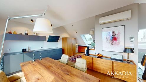 Für eine noch größere Auswahl an Immobilien besuchen Sie www.akkadia.at. Im begehrten Cottageviertel von Döbling befindet sich dieses außergewöhnliche Jugendstil-Palais, welches im Jahr 1912 nach den Plänen des Architekten Jakob Reitzer errichtet wurde. Im Zuge einer umfassenden Sanierung im Jahr 2020 wurde der Dachboden ausgebaut und sechs exklusive Dachgeschosswohnungen geschaffen. Die gelungene Verbindung aus historischem Charme und modernster Ausstattung, kombiniert mit edelsten Materialien und dem unverwechselbaren Flair von Oberdöbling, macht diese Residenz zu einer absoluten Rarität. Die gegenständliche Maisonette erstreckt sich über eine Wohnfläche von ca. 153 m² und überzeugt durch eine durchdachte Raumaufteilung. Über ein großzügiges Vorzimmer betreten Sie die angenehm ruhig gelegene Wohnung. Auf der unteren Ebene erwarten Sie ein weitläufiger Eingangsbereich, ein Masterbedroom mit angeschlossenem Badezimmer mit WC, zwei weitere Schlafzimmer mit vorgelagertem Balkon, ein zweites Badezimmer, eine Gäste-Toilette sowie ein praktischer Abstellraum. Über eine Treppe gelangen Sie in die obere Ebene, die mit einem großzügigen Wohnbereich samt hochwertiger Bulthaup Küche beeindruckt. Auf dieser Ebene befindet sich auch die Terrasse, welche einen herrlichen Blick ins Grüne und in die Stadt bietet. Ein geräumiges Kellerabteil sowie ein eigener Garagenstellplatz runden dieses exklusive Angebot ab. Auf Grund der EU-Richtlinien zum Fernabsatz- und Auswärtsgeschäfte-Gesetz bitten wir um Ihr Verständnis, dass wir Ihnen seit 13. Juni 2014 die Objekt-Unterlagen erst nach Ihrer Bestätigung, dass Sie unser Tätigwerden wünschen und über Ihre Rücktrittsrechte aufgeklärt wurden, zusenden können. Bevor Sie die Unterlagen zugesendet bekommen, erhalten Sie eine Mail in der Sie diese beiden Punkte bestätigen müssen. Vielen Dank für Ihr Vertrauen! Der Vermittler ist als Doppelmakler tätig.Infrastruktur / EntfernungenGesundheitArzt