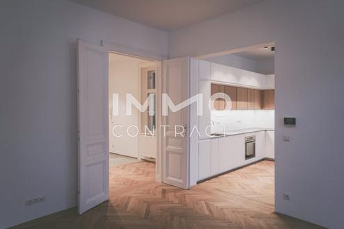 In einer der edelsten Lagen des 18. Bezirks präsentiert sich diese außergewöhnliche Stilaltbau-Wohnung im 3. Stock eines repräsentativen Hauses ein echtes Juwel, das nach einer aufwendigen, hochwertigen Kernsanierung nun im perfekten Zustand bereitsteht. Hier wurde nichts dem Zufall überlassen: jede Oberfläche, jedes Detail und jeder Raum wurde mit höchstem Anspruch an Ästhetik, Qualität und Wohnkomfort neu geschaffen. Bereits beim Betreten eröffnet sich ein beeindruckendes Wohngefühl, geprägt von großzügigen Raumhöhen, edlem Fischgrät-Eichenparkett und maßgefertigten Tischlerarbeiten. Die lichtdurchfluteten Räume schaffen eine Atmosphäre von purer Raffinesse und perfekt inszeniertem Luxus. Die exklusive Küche, ausgestattet mit hochwertigen Geräten und eleganten Oberflächen, bildet das Herzstück des Wohnens. Die luxuriösen Bäder, mit feinsten Premiumfliesen, edlen Armaturen, Walk-in-Dusche und Badewanne, vermitteln Wohnen auf 5-Sterne-Niveau. Ein einzigartiges Angebot für Käufer, die Wert auf Exklusivität, Qualität und zeitlosen Stil legen. Wir weisen darauf hin, dass zwischen dem Vermittler und dem zu vermittelnden Dritten ein familiäres oder wirtschaftliches Naheverhältnis besteht. Der Vermittler ist als Doppelmakler tätig.Infrastruktur / EntfernungenGesundheitArzt