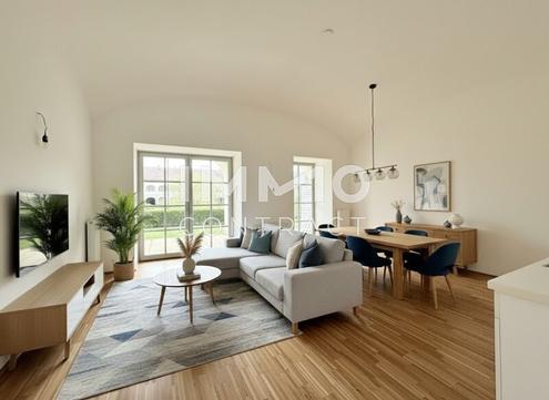 Wohnen, wo Geschichte auf modernen Lebensstil trifft: In der stilvoll revitalisierten Schlossanlage Neusiedl erwartet Sie eine besondere Gartenwohnung, die historischen Charme mit zeitgemäßem Wohnkomfort vereint. Eingebettet in eine wunderschön gepflegte Gesamtanlage mit großzügigen Grünflächen genießen Sie hier ein Wohngefühl, das Ruhe, Eleganz und Lebensqualität auf einzigartige Weise verbindet. Die Wohnung überzeugt durch eine durchdachte Raumaufteilung und ein angenehmes Wohnambiente. Herzstück ist die großzügige Wohn-Essküche, die viel Platz für gemeinsames Leben, Kochen und Entspannen bietet. Große Fensterflächen sorgen für eine helle und freundliche Atmosphäre und schaffen eine harmonische Verbindung zwischen Innen- und Außenbereich. Das separate Schlafzimmer bietet einen ruhigen Rückzugsort und ausreichend Platz für individuelle Gestaltung. Das moderne Badezimmer ist mit einer Dusche sowie einem WC ausgestattet und fügt sich stilvoll in das Gesamtbild der Wohnung ein. Ein absolutes Highlight dieser Immobilie ist der private Außenbereich: Die großzügige Terrasse mit ca. 21,8 m² sowie der angrenzende Eigengarten mit ca. 41,81 m² erweitern den Wohnraum ins Freie und bieten ideale Voraussetzungen für entspannte Stunden im Grünen, gesellige Abende oder einfach zum Abschalten vom Alltag. Die Wohnfläche von ca. 57,28 m² ist optimal genutzt und verbindet Funktionalität mit einem hohen Maß an Wohnqualität. Hochwertige Materialien und eine geschmackvolle Ausführung unterstreichen den besonderen Charakter dieser Wohnung. Die gesamte Anlage besticht durch ihre historische Architektur, bei der das Schöne und Wertvolle aus vergangenen Zeiten bewahrt wurde und gleichzeitig mit modernen, praktischen Wohnlösungen kombiniert wird. Gepflegte Allgemeinflächen und die ruhige Umgebung vermitteln ein Lebensgefühl, das an Urlaub erinnert. Eine perfekte Immobilie für all jene, die das Besondere suchen stilvoll, ruhig und mit viel Charme. Bilder sind zum Teil KI generiert. Wir weisen darauf hin, dass zwischen dem Vermittler und dem zu vermittelnden Dritten ein familiäres oder wirtschaftliches Naheverhältnis besteht. Der Immobilienmakler erklärt, dass er entgegen dem in der Immobilienwirtschaft üblichen Geschäftsgebrauch des Doppelmaklers einseitig nur für den Vermieter tätig ist.Infrastruktur / EntfernungenGesundheitArzt