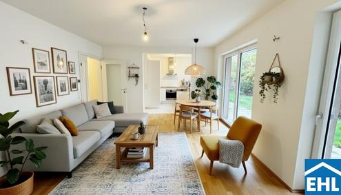 Stadtrand-Idylle in Essling Geräumige 3-Zimmer-Wohnung mit Garten! Diese wunderschöne 3-Zimmer-Wohnung befindet sich in einer ruhigen Wohngegend in Wien Donaustadt. Perfekt geeignet für Familien, Paare oder Singles, die das Leben am Stadtrand einer Millionenstadt genießen möchten, bietet diese Immobilie sowohl Komfort als auch Raum zur Entspannung. Das großzügige Wohnzimmer mit direktem Zugang zur Terrasse und dem privaten Garten ist nach Süden ausgerichtet. Hier können Sie gemütliche Stunden im Freien verbringen. Die optisch vom Wohnbereich abgetrennte, moderne Einbauküche ist mit hochwertigen Geräten der Marken Bosch und Siemens ausgestattet ideal für Hobbyköche und Gourmets. Beide Schlafzimmer sind nach Norden ausgerichtet und bieten dank der ruhigen Lage erholsame Nächte. Das Badezimmer verfügt über ein Fenster, das viel Tageslicht hereinlässt. Zur Ausstattung gehören eine Badewanne, eine barrierefreie Dusche, ein Doppelwaschtisch, der bereits mit Ober- als auch Unterschränken ausgestattet ist sowie ein Waschmaschinenanschluss. Die separate Toilette und der Abstellraum sind praktische Ergänzungen, die über den großzügigen Vorraum zugänglich sind. Die Wohnung ist mit einer Videogegensprechanlage und einer Alarmanlage ausgestattet. Alle Fenster sind mit elektrisch bedienbaren, außenliegenden Rollläden versehen. Die Ausstattung im Überblick: Komplett ausgestattete Küche mit Geräten der Marken Siemens und Bosch Parkettböden in den Wohnräumen Fliesenbelag in den Nassräumen, Vorraum und Abstellraum Gas-Etagenheizung Videogegensprechanlage Alarmanlage Elektrisch bedienbare, außenliegende Rollläden bei allen Fenstern Optional kann in der Garage des Hauses auch ein Stellplatz um EUR 25.000,- erworben werden. Der Verkauf erfolgt mit einer Vermittlungsprovision in Höhe von 3% des Kaufpreises. Die Lage und Infrastruktur: Die Wohnung befindet sich in Essling, einer besonders ruhigen Wohngegend, die von Einfamilienhäusern und landwirtschaftlichen Flächen geprägt ist. Hier können Sie dem Trubel der Stadt entfliehen und Ihre Ruhe genießen. Trotz der idyllischen Lage sind Sie hervorragend angebunden: Die Buslinie 98A, die Sie zur U2-Station Aspernstraße bringt, ist fußläufig erreichbar. Nahversorger und Einkaufsmöglichkeiten, wie das Marchfeld-Center, befinden sich ebenfalls in unmittelbarer Nähe. Wir weisen darauf hin, dass die angeführten Bilder zum Teil mit Hilfe von KI möbliert wurden, um ein besseres Raumgefühl zu veranschaulichen. Wir weisen darauf hin, dass zwischen dem Vermittler und dem zu vermittelnden Dritten ein familiäres oder wirtschaftliches Naheverhältnis besteht. Der Vermittler ist als Doppelmakler tätig.Infrastruktur / EntfernungenGesundheitArzt