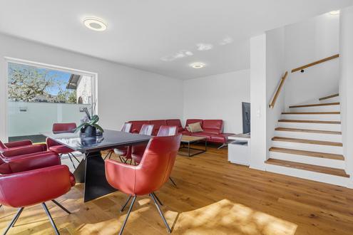 "5 Zimmer - Mühlwasser - Garten - Ruhige Lage" 5 Zimmer ? Mühlwasser ? Garten ? Ruhige Lage Diese voll eingerichtete Doppelhaushälfte überzeugt durch ihre hochwertige Ausstattung und die ausgezeichnete Lage nahe dem Mühlwasser. Das Herzstück des Hauses ist der großzügige Wohn-, Ess- und Küchenbereich im Erdgeschoss. Die moderne DAN-Küche ist mit allen Geräten ausgestattet, darunter Kühlschrank, Tiefkühlkombination und Elektroherd. Von hier aus gelangen Sie direkt auf die Terrasse und in den Garten. Über eine Vollholzstiege erreichen Sie das Obergeschoss, wo sich drei Schlafzimmer sowie ein exklusiv ausgestattetes Badezimmer mit Dusche und Badewanne befinden. Im Dachgeschoss befindet sich ein weiteres Schlafzimmer, das sich ideal als ruhiger Rückzugsort eignet. Von dort aus haben Sie Zugang zu einer Terrasse. Zusätzlich steht Ihnen hier ein weiteres Badezimmer mit Dusche zur Verfügung. Das Kellergeschoss bietet viel Platz und Flexibilität. Dort befinden sich eine weitere DAN-Küche, ein Heizraum sowie ein Warmwasserboiler. Ob Fitnessraum, Spielzimmer für die Kinder oder Stauraum ? die Gestaltung bleibt ganz Ihnen überlassen. Beheizt wird das gesamte Haus mittels Fußbodenheizung, die gemeinsam mit den hochwertigen Echtholzdielenböden für ein besonders angenehmes Wohnklima sorgt. Außenrollläden gehören ebenfalls zur Grundausstattung und sorgen dafür, dass das Haus auch an heißen Sommertagen angenehm temperiert bleibt. Die idyllische und grüne Lage am Rande Wiens bietet Ruhe und Erholung. Die Gegend rund um das Mühlwasser im 22. Bezirk ist ein echter Geheimtipp für Naturliebhaber und Ruhesuchende. In unmittelbarer Nähe befinden sich das Obere Mühlwasser sowie die Neue Donau mit Restaurants und zahlreichen Freizeitmöglichkeiten, etwa dem Wasserski- und Wakeboardlift. Die Lage eignet sich ideal für Familien und alle, die naturverbunden und dennoch stadtnah wohnen möchten. Trotz der ruhigen Randlage ist die Anbindung sehr gut: Die Buslinie 93A bringt Sie bequem zur U2, auch mit dem Auto sind Sie gut angebunden. Ein SPAR-Supermarkt am Biberhaufenweg befindet sich in unmittelbarer Nähe. Autoabstellplatz befindet sich am Grundstück. Lage-Highlights: Mühlwasser, Nationalpark Donau-Auen, Lobau Öffentliche Anbindung: Bus 93A, N91, 95A, 92A, U2-Station per Bus oder Straßenbahn erreichbar Miete: 2.950 Euro inkl. Betriebskosten, exkl. Strom, Warmwasser und Heizung Kaution: 4 Bruttomonatsmieten Mietdauer: 3 Jahre mit Verlängerungsoption Es wird auf die einseitige Vertretung des Vermieters hingewiesen ? eine Doppelmakler-Tätigkeit ist ausgeschlossen. ?5 Rooms ? Mühlwasser ? Garden ? Quiet Location? 5 Rooms ? Mühlwasser ? Garden ? Quiet Location This fully furnished semi-detached house impresses with its high-quality fittings and excellent location near the Mühlwasser. The heart of the house is the spacious living, dining, and kitchen area on the ground floor. The modern DAN kitchen is fully equipped with all appliances, including a refrigerator, freezer combination, and electric stove. From here, you have direct access to the terrace and garden. A solid wood staircase leads you to the upper floor, where you will find three bedrooms as well as an exclusively equipped bathroom with both a shower and a bathtub. On the attic floor, there is an additional bedroom, ideal as a quiet retreat. From there, you also have access to a terrace. This level also features another bathroom with a shower. The basement offers plenty of space and flexibility. It includes another DAN kitchen, a boiler room, and a hot water tank. Whether you choose to use it as a fitness room, children?s playroom, or storage space is entirely up to you. The entire house is heated ??????? underfloor heating, which, together with the high-quality solid wood flooring, creates a particularly comfortable living atmosphere. External blinds are also part of the standard equipment and ensure the house remains pleasantly cool even on hot summer days. The idyllic, green location on the outskirts of Vienna offers peace and relaxation. The area around the Mühlwasser in the 22nd district is a true insider tip for nature lovers and those seeking tranquility. Nearby are the Obere Mühlwasser and the Neue Donau, with restaurants and numerous leisure activities such as a water ski and wakeboard lift. The location is ideal for families and anyone who wants to live close to nature while still being near the city. Despite its quiet setting, transport connections are very good: bus line 93A conveniently takes you to the U2, and the area is also easily accessible by car. A SPAR supermarket on Biberhaufenweg is located nearby. A parking space is available on the property. Location highlights: Mühlwasser, Danube-Auen National Park, Lobau Public transport: Bus lines 93A, N91, 95A, 92A; U2 station reachable by bus or tram Rent: ?2,950 including operating costs, excluding electricity, hot water, and heating Deposit: 4 gross monthly rents Lease term: 3 years with extension option Please note: The agent acts solely on behalf of the landlord; dual representation is excluded.Angaben gemäß gesetzlichem Erfordernis: Miete ?2950 Umsatzsteuer ?0------------------------------------------------------------------Gesamtbetrag ?2950