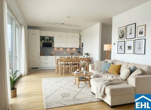 Skyview-Apartment: Gemütliche 2 Zimmerwohnung mit außergewöhnlichem Weitblick In dem im Jahr 2015 entstandenem Stadtviertel rund um das Einkaufszentrum City Gate bietet sich die Möglichkeit, eine clever geplante 2 Zimmerwohnung zu erwerben. In luftiger Höhe des 23. Stockwerks gelegen, bietet diese freifinanzierte Eigentumswohnung neben einem atemberaubenden Blick draußen, auch im Inneren eine praktische Raumaufteilung und moderne Ausstattung. Die knapp 54 m² Wohnfläche sind aufgeteilt wie folgt: Eine geräumige Wohnküche (ca. 28 m²) mit bereits ausgestatteter Einbauküche, genügend Raum für ein gemütliches Wohnzimmer sowie einen Essbereich. Ein praktisch geplantes Schlafzimmer (ca. 13,6 m²), in welchem problemlos u.a. ein Doppelbett, sowie ein großer Kasten Platz finden. Ein Badezimmer mit barrierefreier Dusche. Eine separate Toilette mit Waschbecken. Eine kleine Nische im Vorraum eignet sich hervorragend zur Unterbringung einer Garderobe. Die westseitige Loggia ist besonders abends der ideale Ort, um freie Sicht auf wunderschöne Sonnenuntergänge zu genießen. Die Wohnung ist derzeit noch bewohnt und steht ab August 2026 zur Verfügung. Die Ausstattung: Fußbodenheizung mittels Fernwärme Parkettböden in den Wohnräumen Zeitlose Fliesen in Bad und Toilette Innenliegende, textile Rollos Vollausgestattete Einbauküche Weitere Allgemeinbereiche, die im Haus zur Verfügung stehen: Lift Kellerabteile Fahrradraum Waschküche Gartendeck mit diversen Spielflächen und Ruhezonen Der Verkauf erfolgt mit einer Vermittlungsprovision in Höhe von 3% des Kaufpreises zzgl. USt. Die Lage & Infrastruktur: Das Objekt bietet eine optimale Infrastruktur. Alle Einrichtungen des täglichen Bedarfs sind direkt im Shopping-Center Citygate mit rund 50 Einkaufsmöglichkeiten vorhanden und in weniger als einer Gehminute erreichbar. Zudem befindet sich eine Park- & Ride-Anlage in unmittelbarer Nähe. Hinter der Anlage liegt die U1-Station Aderklaaer Straße, die Ihnen eine direkte Verbindung in das Stadtzentrum sowie sämtliche andere Teile der Stadt ermöglicht. Auch für Autofahrer bestens erschlossen: so liegt die Autobahnzufahrt Rautenweg zur S2 und weiterführend A23 Südosttangente nur wenige Fahrminuten entfernt. U-Bahn-Linie U1 Aderklaaer Straße nur 5 Gehminuten entfernt Buslinien 25A, 28A ebenfalls fußläufig erreichbar Wir weisen darauf hin, dass die Bilder mithilfe von KI virtuell möbliert wurden, um ein besseres Raumgefühl vermitteln zu können. Wir weisen darauf hin, dass zwischen dem Vermittler und dem zu vermittelnden Dritten ein familiäres oder wirtschaftliches Naheverhältnis besteht. Der Vermittler ist als Doppelmakler tätig.Infrastruktur / EntfernungenGesundheitArzt