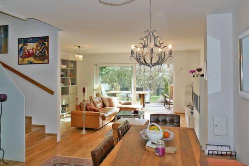 Die in einer von Einfamilienhäusern dominierten Wohngegend gelegene Wohnhausanlage wurde im Jahre 2008 freifinanziert errichtet und befindet sich in traumhaft ruhiger Waldrandlage im 14. Wiener Bezirk, direkt an der Grenze zu Purkersdorf. Das angebotene Reihenhaus liegt im Westtrakt der Wohnhausanlage und ist vom Gästeparkplatz aus durch den Gemeinschaftsgarten erreichbar. Dem Reihenhaus ist ein fixer Stellplatz in der Haustiefgarage zugeordnet, die unter dem Haupttrakt liegt, wo auch die Einlagerungsräume untergebracht sind. Das hochwertige Reihenhaus bietet ca. 148 m² Wohnfläche verteilt auf drei Ebenen. In jedem Geschoß sind großzügige Terrassen, sowohl Richtung Süden als auch Richtung Norden zu finden. Das Erdgeschoß unterteilt sich in den Eingangsbereich mit Vorraum, zwei Abstellräume und WC, die Küche sowie in das über 37 m² große Wohn-Esszimmer mit Ausgang auf die Gartenterrasse. Die zum Wohnzimmer hin offene, cremefarbene Hochglanz-Küche ist von der Firma Ewe und mit Neff Einbaugeräten und einer Liebherr Kühl- und Gefrierkombination ausgestattet. Im Obergeschoß bietet das Reihenhaus einen zentralen Gang mit einer Nische mit Waschmaschinenanschluss, innen liegen ein Badezimmer und ein separates WC. Richtung Norden ausgerichtet ist ein großzügiges Zimmer von 20 m², an der Südseite befinden sich zwei weitere Zimmer, jeweils mit einem Ausgang auf die fast 9 m² große Terrasse. Als oberste Wohnebene steht den zukünftigen Bewohnern das Dachgeschoß zur Verfügung, das sich in ein fast 19 m² großes, lichtdurchflutetes Studio und in ein Badezimmer unterteilt. Außerdem bietet es zwei Dachterrassen, eine nord-, eine südseitig, die beide einen wunderbaren Ausblick auf die ruhige, grüne Umgebung gewähren. Die Schnellbahnhaltestelle der S50, Wien-Weidlingau, ist nur 850 Meter entfernt und gut fußläufig erreichbar. Ein Kindergarten, die Lern- und Spielgruppe Hadersdorf, liegt auf dem Weg dorthin in der Lorenz Stein-Straße. Die Offene Volksschule Hadersdorf und die Neue Sportmittelschule Hadersdorf erreicht man mit der S50 nach nur einer Station, zu Fuß benötigt man max. 20 Minuten. Das nächste Gymnasium ist das in Purkersdorf, das sowohl mit der S-Bahn als auch mit der Buslinie 451 in etwa 25 Minuten erreichbar ist. Das ca. 1,5 km entfernt liegende Auhofcenter bietet eine Vielzahl an Einkaufsmöglichkeiten, ein Ärztezentrum, ein Cineplexx-Kino, Fitnessstudio, Indooraction Park, Bowling, eine Tanzschule und verschiedene Gastronomiebetriebe. Im Sommer kann man sich im Hadersdorf-Weidlingauer Bad gegenüber der Volksschule Abkühlung verschaffen. Der Vermittler ist als Doppelmakler tätig.Infrastruktur / EntfernungenGesundheitArzt