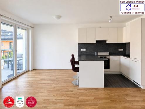 Diese Wohnung überzeugt nicht durch große Worte, sondern durch das, was man sofort merkt: eine klare Aufteilung, viel Licht und hochwertige Qualität. Der Wohnbereich ist offen gestaltet und geht direkt in die hochwertige Einbauküche in weißer Hochglanz-Ausführung über. Sie überzeugt durch ihr modernes, zeitloses Design, klare Linien und eine durchdachte Aufteilung mit ausreichend Arbeits- und Stauraum ein zentraler Bereich, in dem man sich sofort wohlfühlt und gerne Zeit verbringt. Große Fenster sorgen für helle Räume und schaffen eine angenehme Wohnatmosphäre. Vom Wohnbereich aus gelangt man direkt auf den Balkon, der ruhig gelegen ist und einen schönen Blick ins Grüne bietet ideal, um einfach kurz abzuschalten. Auch die weiteren Räume fügen sich stimmig in das Gesamtbild ein: Ein Schlafzimmer mit integriertem Stauraum, ein weiteres Zimmer für Büro oder Gäste sowie ein Badezimmer mit Badewanne, ausgeführt in eleganten, zeitlosen Beigetönen, schaffen eine ruhige, warme Atmosphäre. Das separate WC ist im selben stilvollen Farbkonzept gehalten und ergänzt den durchgängigen, hochwertigen Eindruck der Wohnung. Die Wohnung befindet sich im 1. Obergeschoss eines modernen Neubaus (2017/18) und ist barrierefrei mit Lift erreichbar ein klarer Vorteil, der langfristig relevant bleibt. HIGHLIGHTS UND AUSSTATTUNGSMERKMALE: ? Heller Wohnbereich mit Balkonzugang ? Balkon mit ruhigem Grünblick ? Badezimmer & separates WC in eleganten Beigetönen ? Eichenparkettboden ? Fußbodenheizung ? Elektrische Rollläden ? Video-Gegensprechanlage LAGE: ? Die Wohnung befindet sich in einer besonders ruhigen und gefragten Wohngegend im 10. Bezirk, geprägt von einer aufgelockerten Bebauung und zahlreichen Einfamilienhäusern. Diese Umgebung vermittelt ein beinahe vorstädtisches Wohngefühl ? viel Grün, wenig Verkehr und eine angenehme Nachbarschaftsstruktur. Gleichzeitig ist eine gute Anbindung an das öffentliche Verkehrsnetz sowie die Nahversorgung in kurzer Distanz gegeben. ? Öffentliche Verkehrsmittel (Ubahn, Bus) finden Sie in unmittelbarer Nähe (fußläufig 2 Min.). ÖFFENTLICHE VERKEHRSANBINDUNG: ? U1 ? Bus 16A, 17A, 70A BITTE BEACHTEN SIE, DASS WIR AUF GRUND DER NACHWEISPFLICHT GEGENÜBER DEM EIGENTÜMER NUR ANFRAGEN MIT VOLLSTÄNDIGER BEKANNTGABE VON NAME, ANSCHRIFT, TELEFON UND E-MAIL BEARBEITEN KÖNNEN. Durch unsere Partnerschaften mit einem Partneranwalt, Notar und einer Bank stellen wir Ihnen eine schnellstmögliche Abwicklung zur Verfügung und können Ihnen dadurch eine effiziente Abwicklung garantieren. Wir bieten Ihnen die BESTE rundum Betreuung. Gerne senden wir Ihnen mehrere Informationen per E-Mail-Anfrage. Für weitere Auskünfte steht Ihnen gerne Frau Danijela Hoffmann unter der Telefonnummer +4366488514861 oder per E-Mail unter dani@4m-immo.at jederzeit zur Verfügung.Angaben gemäß gesetzlichem Erfordernis: Heizwärmebedarf:2.08 kWh/(m²a)Klasse Heizwärmebedarf:BFaktor Gesamtenergieeffizienz:0.76Klasse Faktor Gesamtenergieeffizienz:AObjekt ist für eine Wohngemeinschaft geeignetKabel/SAT/TV: JABarrierefrei: JAProvision Euro: 3.00 % exkl. MwSt.