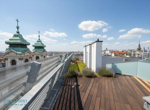 DACHTERRASSENWOHNUNG MIT TOLLEM BLICK - NÄHE MARIAHILFER STRASSE / THEOBALDGASSE 6. Obergeschoß mit Lift, befristete Vermietung (5 Jahre), repräsentativer Altbau RAUMAUFTEILUNG: * zentrales Vorzimmer, * großes Wohn-Esszimmer, * Küche mit Ausgang zu einer innenliegenden Terrasse, * zwei Schlafzimmer, * zwei Badezimmer (ein Bad mit Wanne, Dusche und WC; ein Bad mit Wanne und WC), * ein Gäste-WC, * zwei Abstellräume, * außenliegender Aufgang zur herrlichen Dachterrasse mit Fernblick AUSSTATTUNG: * komplett ausgestattete Küche, * Parkettboden, * Gasetagenheizung/Fußbodenheizung, * Kühlung Für die Erstellung des Mietvertrages gelangt seitens der Hausverwaltung ein Betrag von EUR 349,00 brutto zur Verrechnung. Hinweis/ Disclaimer: Die Möbel sind digital und mit KI erstellt worden. BITTE ZU BEACHTEN: FÜR DIE ANMIETUNG DIESER WOHNUNG IST DIE VORLAGE EINES MONATLICHEN NETTOHAUSHALTSEINKOMMEN IN ÖSTERREICH IN HÖHE VON MINDESTENS DER DREIFACHEN GESAMTMIETE (€ 10.500,00) ERFORDERLICH! weitere Objekte finden Sie auf unserer Homepage: www.gabriel.at Der Immobilienmakler erklärt, dass er entgegen dem in der Immobilienwirtschaft üblichen Geschäftsgebrauch des Doppelmaklers einseitig nur für den Vermieter tätig ist.Infrastruktur / EntfernungenGesundheitArzt