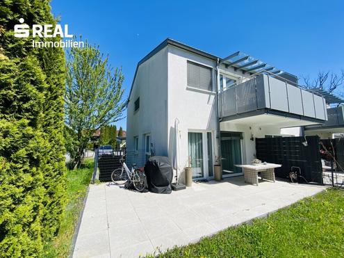 Das schöne Eckreihenhaus im Wohnungseigentum befindet sich in einer Sackgasse am Ende der Moosstraße umgeben von viel Grün. Die Immobilie verfügt über ca. 79,87 m² Wohnfläche zuzüglich ausgebautem Kellergeschoss mit zwei Räumen, eigenem Bad und Lichthof mit ca. 10 m² und bietet viel Platz sowie ein komfortables und modernes Wohnambiente. Das Erdgeschoss unterteilt sich in eine kleine Diele, Wohnzimmer mit Essbereich, Küche und eine Gästetoilette. Die Einbauküche samt E-Geräten ist im Kaufpreis inkludiert. Im Obergeschoss befinden sich zwei Schlafräume und ein großzügiges Badezimmer mit Fenster. Alle Räume sowie das Kellergeschoss sind mit Keramikböden und Fußbodenheizung versehen. Ein eigener Garten mit ca. 105 m² zuzüglich großer Terrasse mit ca. 25 m² sind optimale Ergänzungsflächen im Sommer. Auch der große Balkon lädt dazu ein, schöne Sommerabende zu genießen. Die Liegenschaft bietet einen herrlichen Blick auf die umliegende Bergwelt. Genießen Sie die Sonne ab Mittag und die frische Luft direkt vor Ihrer Haustür.Infrastruktur / EntfernungenGesundheitArzt