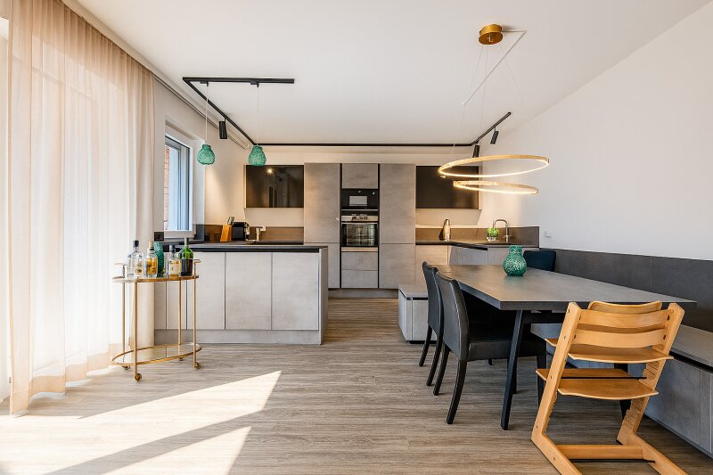 In begehrter Lage von Altmünster erwartet Sie eine stilvolle Eigentumswohnung im 2. Liftstock eines modernen, energieeffizienten Wohnhauses (Baujahr 2018). Mit einer Wohnfläche von rund 88?m² und einer großzügigen, südwestlich ausgerichteten Loggia mit ca. 17?m² bietet dieses Objekt nicht nur höchsten Wohnkomfort, sondern auch einen einzigartigen Ausblick auf den Traunsee, den Traunstein, den Grünberg und die ?schlafende Griechin?. Der durchdachte Grundriss überzeugt mit einer klaren Raumaufteilung: Zwei Schlafzimmer, ein offener Wohn-Essbereich mit maßgefertigter Tischlerküche, ein Badezimmer mit Wanne und Dusche, ein separates WC sowie ein Abstellraum. Die hochwertige Ausstattung ? darunter Fußbodenheizung, Parkett- und Feinsteinzeugböden, außenliegender Sonnenschutz und Luftwärmepumpe ? erfüllt alle Ansprüche an modernes Wohnen. Besonderes Augenmerk wurde auf Qualität und Funktionalität gelegt: Der Eingangsbereich und die Küche wurden individuell vom Tischler entworfen und fügen sich harmonisch in das Gesamtkonzept ein. Ein Tiefgaragenplatz, ein weiterer Stellplatz im Freien sowie ein eigenes Kellerabteil runden das Angebot ab. Die infrastrukturelle Anbindung ist hervorragend: Der Bahnhof ist nur 150?m entfernt, Nahversorger, Schule, Apotheke und der See sind ebenfalls fußläufig erreichbar. Trotz der zentralen Lage ist die Wohnung ruhig gelegen und bietet ein Maximum an Lebensqualität. Eckdaten im Überblick: Wohnfläche: ca. 88,26?m² Loggia: ca. 17,13?m² 3 Zimmer Bad mit Wanne und Dusche Separates WC Abstellraum Kellerabteil Tiefgaragenplatz und Freistellplatz Fußbodenheizung mit Luftwärmepumpe Baujahr: 2018 Energieausweis: HWB 36?kWh/m²a (Klasse B), fGEE 0,57 (Klasse A+) Kaufpreis: 468.000?Euro Betriebskosten: 289?Euro / Monat Reparaturrücklage (per 31.12.2024): 139.421?Euro Diese Wohnung eignet sich ideal für Menschen, die Wert auf hochwertige Ausstattung, eine durchdachte Raumaufteilung und einen unvergleichlichen Ausblick legen. Sie bietet ein ruhiges Zuhause mit Stil ? nur wenige Schritte vom Leben entfer