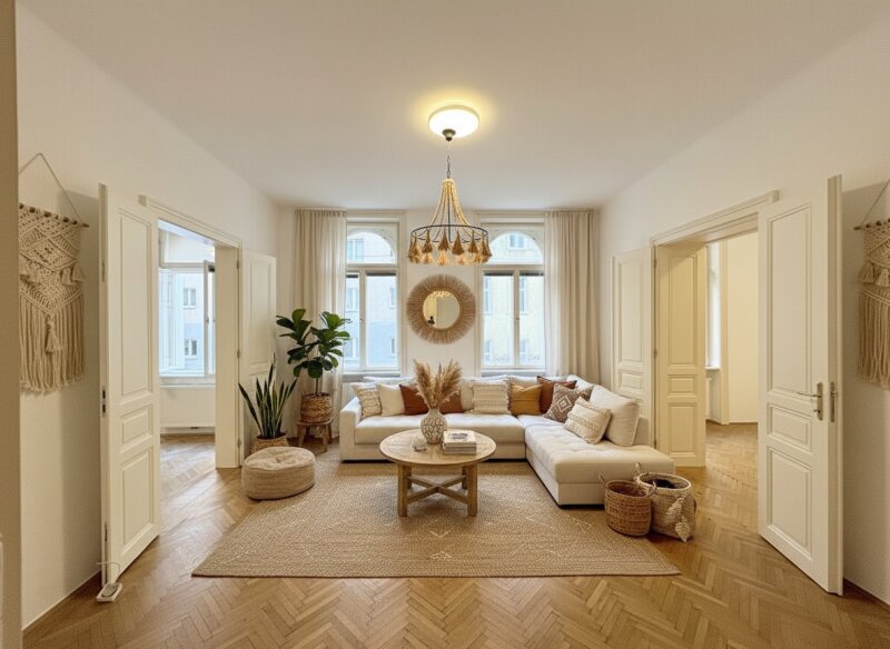 Stadtleben trifft Komfort ? Ihre neue 3-Zimmer-Wohnung im Herzen Wiens Diese beeindruckende 3-Zimmer-Wohnung im begehrten 9. Bezirk vereint stilvolles Wohnen mit einem atemberaubenden Stadtblick, der jeden Tag zu einem besonderen Erlebnis macht. Mit ca. 86,53 m² Wohnfläche besticht die Wohnung durch ein durchdachtes Raumkonzept, das Funktionalität und Gemütlichkeit perfekt vereint. Die hellen, lichtdurchfluteten Räume sind mit hochwertigem Parkett und Fliesenausgestattet, während die moderne Einbauküche zum Kochen und Verweilen einlädt. Zwei Badezimmer ? eines mit luxuriöser Badewanne, das andere mit praktischer Dusche ? sorgen für zusätzlichen Komfort. Die Immobilie eignet sich ideal für Paare, Familien oder Kapitalanleger, die das urbane Leben in Wien genießen möchten. Dank hervorragender Verkehrsanbindung über U-Bahn, Bus, Straßenbahn und Bahnhof gelangen Sie schnell und unkompliziert in alle Teile der Stadt. Auch die Umgebung lässt keine Wünsche offen: Ärzte, Apotheken, Schulen, Kindergärten, Universitäten, Supermärkte und Bäckereien befinden sich in unmittelbarer Nähe ? perfekt für einen komfortablen Alltag. Weitere Annehmlichkeiten der Wohnung: Etagenheizung für behagliche Wärme Personenaufzug für bequemen Zugang Mit einem Kaufpreis von ? 599.000,? erwerben Sie nicht nur eine Wohnung, sondern ein Lebensgefühl in einer der attraktivsten Gegenden Wiens. Nutzen Sie diese Gelegenheit, Teil dieses dynamischen Viertels zu werden und genießen Sie die Vorzüge des Wiener Stadtlebens in vollen Zügen. Die dargestellten möblierten Räume sind KI-generierte Visualisierungen und dienen lediglich der Veranschaulichung möglicher Einrichtungskonzepte. Die Möblierung ist nicht im Kaufpreis enthalten.Infrastruktur / EntfernungenGesundheitArzt <500mApotheke <500mKlinik <500mKrankenhaus <1.500mKinder & SchulenSchule <500m