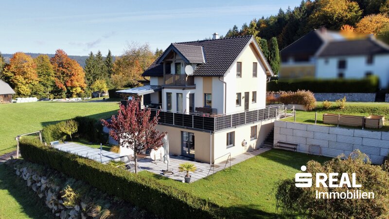 Familienfreundliches Einfamilienhaus in ruhiger Lage zu verkaufen! Wohlfühloase mit Pool, moderner Ausstattung und großzügigem Raumangebot! In einer ruhigen Wohngegend erwartet Sie dieses gepflegte Einfamilienhaus, das im Jahr 2008 von der Firma Hartl in solider Holzriegelbauweise errichtet wurde. Bereits beim Betreten überzeugt das Fertigteilhaus durch eine helle und einladende Atmosphäre, die ein angenehmes Wohngefühl vermittelt. Erdgeschoss mit Terrasse Im Erdgeschoss bildet der großzügige Ess- und Wohnbereich mit etwa 37 m² das Herzstück des Hauses. Die moderne, maßgefertigte Tischlerküche lädt zum gemeinsamen Kochen und Verweilen ein. Ergänzt wird diese Ebene durch eine praktische Garderobe, die durch eine Schiebetür vom Vorraum getrennt werden kann, sowie ein separates WC. Vom Wohnbereich aus gelangen Sie direkt auf die teilüberdachte Terrasse, die zu entspannten Stunden im Freien einlädt. Dachgeschoss ? Viel Platz für die ganze Familie Im Dachgeschoss finden Sie ein geräumiges Zimmer mit Schrankraum sowie zwei weitere Zimmer, die flexibel als Schlafzimmer, Kinderzimmer oder Homeoffice genutzt werden können. Ein modernes Badezimmer mit WC sorgt für zusätzlichen Komfort auf dieser Ebene. Keller und Garten Der teilweise zu Wohnräumen ausgebaute Keller bietet nicht nur direkten Zugang zum Garten, sondern auch ein weiteres Bad mit WC ? optimal nutzbar als Gästebereich oder für zusätzliche Flexibilität. Ein besonderes Highlight ist der 2019 errichtete Pool im Garten, ausgestattet mit moderner Salzwasseranlage, Gegenstromanlage und Überdachung, sodass Badespaß bei jedem Wetter möglich ist. Für die kostenlose Bewässerung des Gartens sorgt eine 15.000 Liter fassende Regenwasserzisterne.