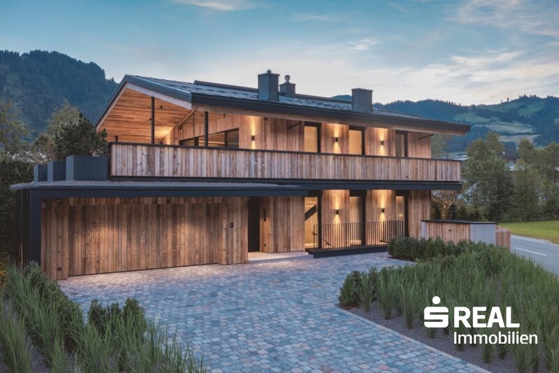 Luxuriöses Neubau-Chalet mit atemberaubendem Blick Dieses exklusive Neubau-Chalet erstreckt sich über drei luxuriöse Ebenen und beeindruckt mit hochwertiger Ausstattung und einer harmonischen Verbindung von traditionellen und modernen Elementen. Das Landhaus wird schlüsselfertig übergeben und ist sofort bezugsfertig. Es wurde von Handwerksmeisterbetrieben mit höchster Präzision und designaffiner Sorgfalt ausgestattet. Die Immobilie besticht durch ihre exklusive Einrichtung, zu der Designermöbel, maßgefertigte Einbauschränke und eine voll ausgestattete Markenküche gehören. Jedes Detail wurde mit edlen Dekorations- und Stilelementen perfektioniert. Dachgeschoss: Wohnen mit Panorama Das Herzstück des Chalets ist der großzügige Wohn- und Essbereich im Dachgeschoss, der sich über ca. 80 m² erstreckt. Er bietet einen stilvollen Designerkamin und eine hochwertige vollausgestattete Küche sowie eine großzügige Wohnlandschaft. Die Designermöbel sind farblich passend zum Gesamtkonzept abgestimmt. Der sichtbare Altholz-Dachstuhl verleiht dem Raum eine besonders gemütliche Atmosphäre. Die umlaufenden, teils überdachten Terrassen sowie die großen Panoramafenster eröffnen einen spektakulären Blick auf den Wilden Kaiser. Ein Gäste-WC ist ebenfalls auf dieser Etage untergebracht. Erdgeschoss: Master-Suite und Wellness Im Erdgeschoss erwartet Sie der elegante Eingangsbereich. Hier befindet sich der private Masterbereich mit einem geräumigen Ankleidezimmer und einem Badezimmer en suite, das eine freistehende Badewanne umfasst. Ein Highlight ist der exklusive Wellnessbereich mit Sauna, Ruhezone, Dusche und WC ? der perfekte Ort für Entspannung. Der ca. 25 m² große Naturpool, gefüllt mit frischem, Bergquellwasser verspricht ein tolles Erholungserlebnis. Untergeschoss: Gästezimmer und Weinkeller Das Untergeschoss bietet drei weitere Schlafzimmer, von denen jedes über ein eigenes Badezimmer und einen Terrassenzugang verfügt. Eines der Zimmer ist zusätzlich mit einem Ankleidezimmer ausgestattet. Zusätzlich gibt es auf dies