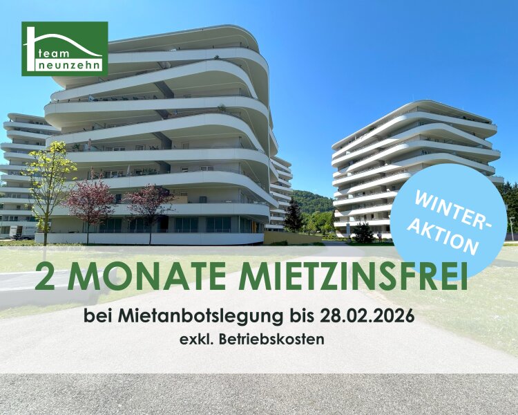 AKTION 2 MONATE MIETZINSFREI*gültig bei Mietanbotslegung bis zum 28.02.2026*die Betriebskosten sind auch während der mietzinsfreien Monate zu entrichtenUrbanes Wohnen trifft grüne Idylle ? Willkommen in Ihrem neuen Zuhause in der Green CityEntdecken Sie inmitten des aufstrebenden Bezirks Straßgang die Green City! Ein exklusiver Wohnbau, welcher einen urbanen Lebensstil mit grüner Wohnqualität vereint. Freuen Sie sich auf hochwertig ausgestattete Wohnungen, großzügige Freiflächen und eine hervorragende Infrastruktur.Lage & UmgebungDie Green City punktet mit ihrer einzigartigen Kombination aus Ruhe, Natur und nähe zum Zentrum im Grazer Stadtgebiet. Großzügige, zusammenhängende Grünflächen schaffen ein entspanntes Wohngefühl, welches ideal für Familien, Paare und all jene ist, die stadtnah wohnen und dennoch im Grünen leben möchten.Dank der ausgezeichneten Verkehrsanbindung erreichen Sie:Das Grazer Stadtzentrum in ca. 15 Minuten mit dem Auto oder rund 20 Minuten mit den öffentlichen Verkehrsmitteln Den Grazer Hauptbahnhof sowie den Flughafen Graz bequem und schnell Die Shopping City Seiersberg für Einkäufe und Freizeitaktivitäten Wohnen mit QualitätAlle Wohnungen im Projekt Green City überzeugen durch:Moderne Architektur und durchdachte Grundrisse Hochwertige Ausstattung Hellen Wohnräumen mit viel Tageslicht Eigene Gärten, Balkone oder Terrassen als private Rückzugsorte Ausstattung:Energieeffizient: Hochdämmender Vollwärmeschutz Komfort: Moderne Liftanlage und Tiefgarage Komplett ausgestattete Einbauküche inkl. Geschirrspüler (Geräte von der Marke Leonard) Abschließbarer Fahrrad- & Kinderwagenabstellraum SAT-Anschluss in jeder Wohnung für UPC & A1 Anschluss Eigenes Kellerabteil (im Mietpreis enthalten) AKTION 2 MONATE MIETZINSFREI*gültig bei Mietanbotslegung bis zum 28.02.2026*die Betriebskosten sind auch während der mietzinsfreien Monate zu entrichtenHaus 14 - Wohnung Top 37:Die 2-Zimmer-Wohnung mit ca. 49,66 m² Wohnfläche zzgl. ca. 17,06 m² Balkon befindet sich im 3. Obergeschoss und gliedert sich in folgende Raumaufteilung:Eingangsbereich / Vorraum - ca. 5,97 m² großer Wohn-/Essbereich - ca. 24,51 m²