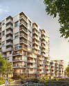 WOHNEN IM VILLAGE IM DRITTEN Im dritten Wiener Gemeindebezirk entsteht mit dem VILLAGE IM DRITTEN ein neues Stück Stadt ? eines der größten Stadtentwicklungsgebiete Wiens. Auf über elf Hektar entwickelt die ARE Austrian Real Estate gemeinsam mit der Stadt Wien und dem wohnfonds_wien ein lebendiges, nahezu autofreies Quartier mit rund 2.000 Wohnungen, Büro- und Gewerbeflächen, Kinderbetreuung, Bildungseinrichtungen und Nahversorgung. Das grüne Herz bildet der über 2 Hektar große Bert-Brecht-Park ?eine Oase für Erholung, Begegnung und Spiel. Alle Dächer, die nicht begehbar sind, werden begrünt. Sharing-Angebote, Einkaufsmöglichkeiten und Gastronomie liegen direkt vor der Haustüre. Nachhaltigkeit, kurze Wege und hohe Lebensqualität sind die Leitlinien dieses neuen Stadtviertels. Mit dem Slogan ?natürlich draußen? verkörpert Baufeld 14A diese Idee in besonderer Weise: großzügige Freibereiche, intelligente Architektur, nachhaltige Energieversorgung ? Wohnen mitten in Wien, im Einklang mit der Natur. ARCHITEKTUR, DIE FREIRAUM GESTALTET Der Gebäudekomplex besteht aus zwei trapezförmigen Baukörpern, die über die Tiefgarage im ersten Untergeschoss verbunden sind. Insgesamt entstehen 126 Eigentumswohnungen, ergänzt durch ein Geschäftslokal, sowie 65 KFZ-Stellplätze und zahlreiche Fahrradabstellplätze. Jeder Wohnung ist zudem ein Einlagerungsraum zugeordnet. Großzügig und freundlich gestaltete Entrées empfangen die Bewohner:innen und leiten in geräumige Stiegenhäuser. Einschnitte in den obersten Geschossen und weite Treppenaugen bringen Tageslicht tief in die Allgemeinbereiche. Einen wichtigen Beitrag zum sommerlichen Hitzeschutz leisten begrünte Freiraumzonen vor den Wohnungen sowie der textile Sonnenschutz an den Balkonfronten. Auf den Gründächern entsteht mit einem Biodiversitätskonzept neuer Lebensraum für Vögel und Insekten. Architektonische Highlights Rhythmisch gegliederte Fassaden mit Holz- & Klinkerelementen ? modern, leicht und zeitlos Balkone & Loggien von nahezu allen Wohnräumen direkt begehbar, mit Sonnenschutzscreens und großzügiger Tiefe Begrünte Freiraumzonen vor den Wohnungen als natürliche Klimapuffer Gründächer mit Biodiversitätskonzept ? Lebensraum für Vögel & Insekten Einladende Entrées & Treppenhäuser, durch Einschnitte und Tr