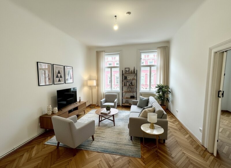 Willkommen in Ihrem neuen Zuhause im beliebten 15. Bezirk von Wien! Diese charmante Wohnung im 2. Obergeschoß bietet eine Wohnfläche von 43,78 m² sowie einen schönen Ausblick über die Stadt. Die Wohnung ist teilsaniert und präsentiert sich hell und freundlich. Fliesen- und Parkettböden sorgen für eine angenehme Wohnatmosphäre. Beheizt wird die Wohnung mittels Etagenheizung, wodurch Sie die Temperatur individuell regulieren können. Der Grundriss ist besonders praktisch: Derzeit verfügt die Wohnung über zwei Zimmer, wobei sich die Küchenanschlüsse im zweiten Zimmer befinden. Dadurch bietet sich die ideale Möglichkeit, eine Wohnküche mit separatem Wohn-/Schlafzimmer zu gestalten. Aktuell ist keine Küche eingebaut. Das Badezimmer ist mit einer Dusche ausgestattet und bietet alles, was man für den täglichen Komfort benötigt. Kabel- bzw. Satellitenanschlüsse sind ebenfalls vorhanden. In der Wohnung ist keine Küche eingebaut. Alle Anschlüsse sind im zweiten Zimmer vorhanden. Ein weiterer Pluspunkt dieser Wohnung ist die hervorragende Verkehrsanbindung. Sie erreichen in kürzester Zeit die U-Bahn, Straßenbahn und Buslinien, sodass Sie schnell und unkompliziert im Herzen der Stadt oder an Ihrem Arbeitsplatz sind. Der nahegelegene Bahnhof bietet zusätzlich eine Anbindung an das überregionale Verkehrsnetz. Die Umgebung lässt ebenfalls keine Wünsche offen: In unmittelbarer Nähe finden Sie alles, was Sie für den Alltag benötigen. Arzt, Apotheke, Klinik, Schulen sowie Kindergarten und Universität sind schnell erreichbar. Auch die Einkaufsmöglichkeiten sind vielfältig ? Supermärkte, Bäckereien und ein Einkaufszentrum befinden sich in der Nähe und laden zu entspannten Shoppingtouren ein. Die Miete von nur 576,81 ? macht diese Wohnung besonders attraktiv, sowohl für Singles als auch für Paare oder als Investment. Nutzen Sie die Gelegenheit, diese Wohnung zu Ihrem neuen Zuhause zu machen und genießen Sie das urbane Leben in Wien in vollen Zügen. Zögern Sie nicht und vereinbaren Sie noch heute einen Besichtigungstermin ? Ihr neues Zuhause wartet bereits auf Sie! Der Immobilienmakler erklärt, dass er ? entgegen dem in der Immobilienwirtschaft üblichen Geschäftsgebrauch des Doppelmaklers ? einseitig nur für den Vermieter tätig ist.Infrastruktur / Ent