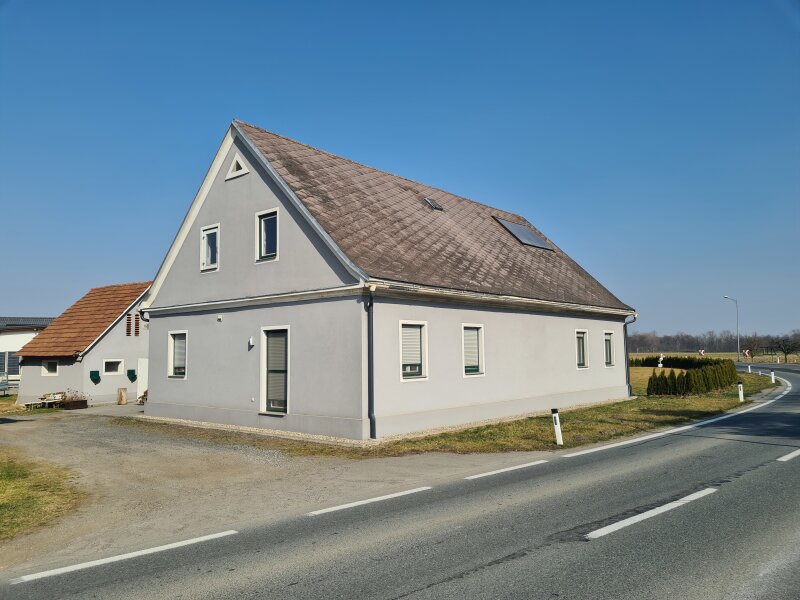 Modernisierte Mietwohnung mit 71m² Wohnfläche in einem zuletzt 2015 sanierten, ortsgetreuen Bauernhaushälfte. Die Wohnung liegt an der Süd- Ostseite des Hauses und ist über den großen Innenhof der Liegenschaft leicht zu erreichen. Eingeteilt in: 1 großer Vorraum 1 zeitgemäßes Bad mit Dusche, Fenster und WC 1 Schlafzimmer 1 offener Wohn-Essbereich mit moderner Küche in L-Form Die vom offenen Wohnbereich aus begehbare, geschotterte ca. 20m² Terrasse, kann nach Belieben gestaltet werden. 2 eigene PKW Parkplätze und weitere Gästeparkplätze sind im Mietzins inkludiert, ein Garagenstellplatz wäre zumietbar. Im Pauschalmietzins von 600,- Euro sind Küchenmiete, Betriebskosten für 2 Erwachsene Personen sowie die Umsatzsteuer bereits enthalten. Zuzüglich verbrauchsabhängige Heizkosten für die ÖL ZH sowie Kosten für Strom, Internet etc. Kaution: 1.800,- Euro Haustiere nach Rücksprache mit dem Vermieter möglich. Der Immobilienmakler erklärt, dass er ? entgegen dem in der Immobilienwirtschaft üblichen Geschäftsgebrauch des Doppelmaklers ? einseitig nur für den Vermieter tätig ist.