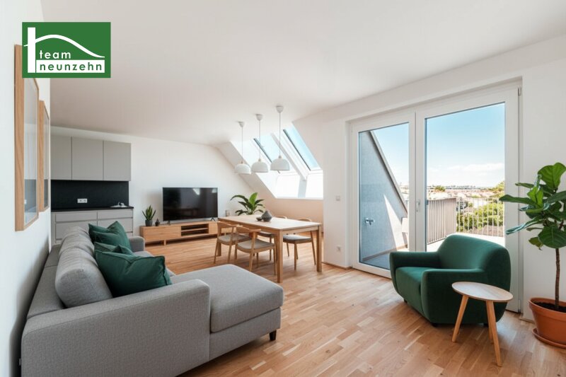 Wohnen auf höchstem Niveau in KagranIn einer modernen Wohnhausanlage auf Eigengrund, bestehend aus drei Bauteilen, stehen hochwertige Eigentumswohnungen mit durchdachten Grundrissen zum Verkauf. Zeitgemäße Architektur, nachhaltige Bauweise und hohe Wohnqualität prägen das Gesamtbild dieser Liegenschaft. Die Wohnungen werden im Erstbezug angeboten und richten sich sowohl an Eigennutzer als auch an Anleger.Attraktive Lage mit hervorragender AnbindungDie Liegenschaft befindet sich in zentraler Lage nahe der Donaufelder Straße, zwischen Wagramer Straße und Dückegasse. Durch die Straßenbahnlinien 25, 26 und 27 besteht eine ausgezeichnete öffentliche Verkehrsanbindung Richtung Floridsdorf (S-Bahn, U6), Kagran sowie Kagraner Platz (U1). Damit sind das Wiener Stadtzentrum sowie weitere Stadtteile schnell und komfortabel erreichbar.Umfassende Nahversorgung und hoher FreizeitwertNeben der sehr guten Verkehrsanbindung überzeugt die Lage auch durch eine ausgezeichnete Infrastruktur. In unmittelbarer Umgebung befinden sich Billa, Spar, Apotheke sowie das K1 Einkaufszentrum. Entlang der Angyalföldstraße ergänzen weitere Nahversorger wie Penny, Hofer, Bipa und Billa das Angebot. Das Westfield Donau Zentrum ist in wenigen Straßenbahnstationen erreichbar.Erholungs- und Freizeitmöglichkeiten bieten unter anderem die Alte Donau (ca. 20 Gehminuten) sowie der nahegelegene Kirschblütenpark. Zeitgemäße Ausstattung und nachhaltige HaustechnikAuch in der Ausführung der Wohnungen wurde besonderer Wert auf Qualität, Komfort und Energieeffizienz gelegt. Die Ausstattung umfasst unter anderem:Vollwärmeschutzfassade Vollausgestattete Küchen Freiflächen bei allen Wohnungen (Balkon, Terrasse oder Garten) Elektrisch bedienbare, außenliegende Raffstores Vorbereitung für Klimaanlagen mit Splitgeräten in den Dachgeschoßen Nachhaltiges Energiekonzept mit Erdwärme (Sole-Wärmepumpen) Photovoltaikanlage zur Unterstützung der Warmwasseraufbereitung Fußbodenheizung und Fußbodenkühlung Echtholzparkettboden Eiche Kunststoff-Alu-Fenster mit 3-fach-Isolierverglasung Sicherheitseingangstüren Hochwertige Sanitärausstattung Video-Gegensprechanlage Wohnung Top 25Die drei Zimmer Wohnung umfasst ca. 89,96 m² und befindet sich im ersten Dachgeschoß mit nördlicher Ausrichtung.Vorraum: 7,5