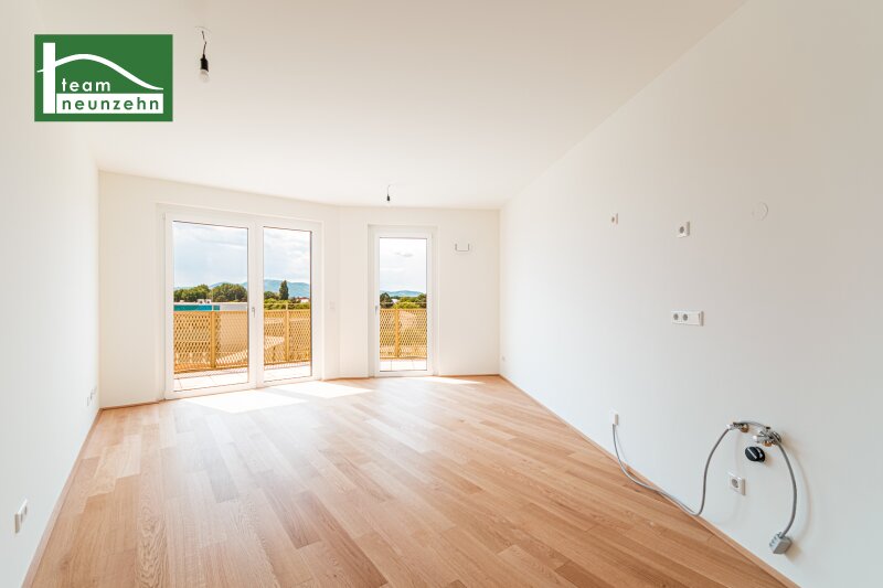 Hirschfeld ? Naturnah wohnen mit urbanem Komfort Im Wohnprojekt ?Hirschfeld ? Naturnah wohnen?, das 2025 fertiggestellt wurde, erwarten Sie moderne Eigentumswohnungen mit durchdachten Grundrissen, hoher Bauqualität und zeitgemäßer, energieeffizienter Ausstattung. Ergänzend stehen KFZ-Stellplätze in der hauseigenen Garage zur Verfügung. Die Wohnungen bieten 2 bis 4 Zimmer mit Wohnflächen von ca. 45 m² bis 96 m² sowie großzügige Freiflächen ab mindestens 9 m² ? ideal für Familien, Paare oder Singles mit Anspruch an Komfort und Lebensqualität. Das Gebäude liegt in zweiter Reihe zur Gerasdorfer Straße und grenzt nördlich direkt an ein idyllisches Wald- und Wiesengebiet. Diese besondere Situierung garantiert ein ruhiges Wohnambiente, ohne auf eine ausgezeichnete Infrastruktur verzichten zu müssen. Der Marchfeldkanal ist fußläufig in rund 10 Minuten erreichbar, die U1 Leopoldau in ca. 15 Minuten mit dem Bus. Ihre Vorteile auf einen Blick Provisionsfreier Verkauf Sofort beziehbar Nachhaltige, energieeffiziente Bauweise Fußbodenheizung & -kühlung über Geothermie/Wärmepumpe Hochwertige Bauausführung durch STRABAG Optimierte Grundrisse & großzügige Raumhöhen (ca. 2,60 m im Regelgeschoss, ca. 2,80 m im EG & DG) Attraktive Allgemeinbereiche Kinderwagen- & Fahrradraum, Spielplatz, modellierte Spielwiese mit Baumbestand, Gemeinschaftsraum Ausstattungsstandard Der Fokus dieses Projekts liegt klar auf Energieeffizienz und Wohnkomfort. Der Niedrigenergiehaus-Standard mit klimaaktiv-Zertifizierung ?Silber? unterstreicht den nachhaltigen Anspruch der Wohnanlage. Fußbodenheizung und -kühlung (Geothermie/Wärmepumpe) Photovoltaikanlage am Dach Hauseigene SAT-Anlage Gegensprechanlage 3-fach isolierverglaste Kunststoff-Alu-Fenster inkl. elektrischer Raffstores Sicherheitstüren