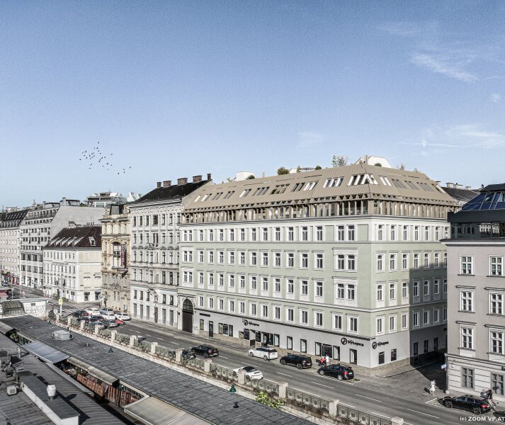 DAS PROJEKT Direkt am pulsierenden Naschmarkt entsteht ein außergewöhnliches Wohnprojekt, das urbanes Leben mit individuellem Gestaltungsspielraum verbindet. Im neu ausgebauten Dachgeschoss eines sorgfältig revitalisierten Altbaus entstehen 13 exklusive Wohnungen mit 2 bis 4 Zimmern und Wohnflächen von ca. 61 bis 163 m². Alle Wohnungen verfügen über großzügige Freiflächen, einige sogar über weitläufige Dachterrassen mit unvergleichlichem Blick über Wien. Einzigartig bei diesem Projekt ist außerdem der Freiraum bei der Gestaltung: Sie haben die Möglichkeit, Ihre Ausstattung aus zahlreichen Varianten frei zu kombinieren und sich so ein Zuhause zu schaffen, das sich an Ihre Wünsche und Vorstellungen anpasst. Dabei vereinen sich historischer Altbaucharme und moderne Wohnstandards harmonisch miteinander. Alle Infos zu den verfügbaren Wohnungen finden Sie in unserem Grundrissnavigator: www.rechtewienzeile21.at Genuss in vollen Zügen bedeutet hier: die Freiheit, Ihre Wohnung individuell zu gestalten und eine Lage, die keine Wünsche offen lässt ? mit dem Naschmarkt und seinen kulinarischen Schätzen direkt vor der Haustür, pulsierendem Stadtleben rundherum und der perfekten Anbindung ins Zentrum. HIGHLIGHTS 13 exklusive Dachgeschosswohnungen fantastische Ausblicke herausragende Architektur alle Wohnungen auf einer Ebene/keine Maisonetten 2 ? 4 Zimmer | Wohnflächen ca. 61 ? 163 m² Ihr Wohntraum in eigener Hand | Ausstattung frei kombinierbar Großzügige Freiflächen, teilweise mit großen, privaten Dachterrassen Raumhöhe von bis zu 2,72 auf der oberen Dachebene Individuelle Gestaltung möglich Historischer Altbau kombiniert mit moderner Architektur Direkt am Naschmarkt | Restaurants | Cafés | Boutiquen Perfekte Anbindung | Kettenbrückengasse (U4) | Karlsplatz/Oper (U4, U2, U1) WOHNUNG STIEGE 1 | TOP 39: Raumaufteilung: Vorraum, WC, Abstellraum und Speis Schlafzimmer mit en-suite Bad großzügige Wohnküche mit direktem Ausgang auf die Loggia 5 m² Loggia NEBENKOSTEN Der guten Ordnung halber halten wir fest,