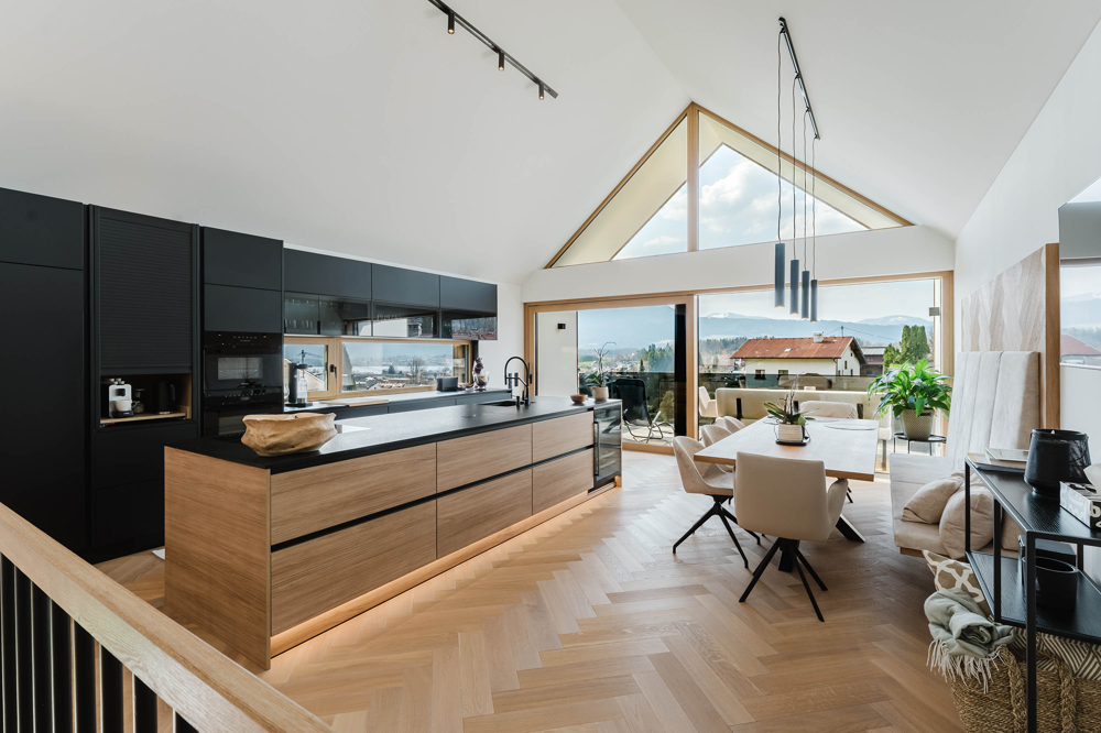 In privilegierter Bestlage von Mondsee präsentiert sich dieses außergewöhnliche Architektenhaus. Eingebettet in eine der schönsten Landschaften Österreichs eröffnet diese Villa mit einer Wohnnutzfläche von rund 231 m² einen Lebensraum, der inspiriert und höchsten Ansprüchen gerecht wird. Der einladende Eingangsbereich bildet den Auftakt von einem durchdachten und anspruchsvollen Raumkonzept. Ein Foyer samt geschickt integriertem Garderobenbereich empfängt die Bewohner und führt weiter zu einem Gästezimmer mit eigenem Badezimmer. Eine elegant geführte Holztreppe leitet in die darüberliegende Wohnebene, wo sich der private Rückzugsbereich entfaltet. Zusätzlich besteht die Möglichkeit, einen Vakuumlift für eine barrierefreie Erschließung der Ebenen zu installieren. Der großzügige Masterbereich mit Schrankraum und Bad en suite vereint höchsten Komfort und stilvolle Zurückhaltung. Ein weiteres, großzügig geschnittenes Schlafzimmer verfügt ebenfalls über ein eigenes Badezimmer und erfüllt höchste Wohnansprüche. Für zusätzlichen Komfort sorgt auf dieser Ebene ein Gäste-WC. Von hier aus öffnet sich der Zugang zur weitläufigen Poolterrasse, die mit einem herrlichen Blick Richtung Mondsee begeistert und zu entspannten Stunden im Freien einlädt. Der Pool sorgt an warmen Sommertagen für erfrischende Abkühlung. Das Obergeschoss beeindruckt mit großzügigen Glasflächen und außergewöhnlichen Raumhöhen von über vier Metern. Die offen gestaltete Wohnküche überzeugt durch klare Linienführung und elegante Zurückhaltung und macht das Kochen zu einem sinnlichen Erlebnis. Der angrenzende Wohnbereich begeistert mit seiner beeindruckenden Panoramaverglasung und lädt zu entspannten Momenten im Kreise der Familie ein. Die Terrasse ergänzt diesen Bereich und erweitert den Wohnraum harmonisch ins Freie. Die gesamte Liegenschaft besticht durch ihre nachhaltige Holzbauweise, die nicht nur ökologischen Ansprüchen gerecht wird, sondern auch eine warme und behagliche Wohnatmosphäre schafft. Dieses Haus ist weit mehr als ein Ort zum Wohnen, es ist ein Ort zum Ankommen, zum Durchatmen und zum Genießen - ein Refugium für Individualisten und Familien, die das Besondere suchen und das Außergewöhnliche zu schätzen wissen. Wir haben Ihr Interesse geweckt? Für weitere Fragen bzw. zur Vereinbarung von Besichtigungsterminen steht Ihnen Herr Hermann Richter-Irsigler gern
