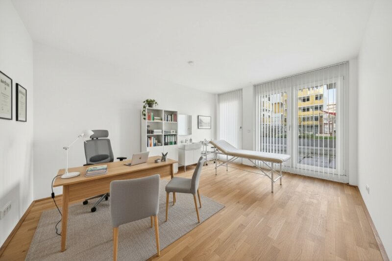 Moderne Praxisfläche mit Terrasse nahe U1 Kagran ? Zukunftsstandort mit großem Entwicklungspotenzial Der Standort rund um Kagran entwickelt sich derzeit besonders dynamisch: In der unmittelbaren Umgebung entstehen zahlreiche neue Wohnprojekte, wodurch in den kommenden Jahren ein stetig wachsendes Einzugsgebiet mit zusätzlichem Bedarf an medizinischen, therapeutischen und beratenden Dienstleistungen entsteht. Dadurch bietet sich hier eine hervorragende Gelegenheit, frühzeitig einen Praxisstandort in einem stark wachsenden Stadtteil zu sichern. In attraktiver Lage nahe der U1-Station Kagran, unweit der Alten Donau und des Donauzentrums, gelangt in unserem hochwertigen Neubauprojekt ?Arakawastraße 3 / Tokiostraße 5a? eine moderne Praxisfläche zum Verkauf. Die Einheit überzeugt durch eine durchdachte Raumaufteilung, helle Räume und eine großzügige Terrasse ? ideale Voraussetzungen für eine Ordination, Therapie- oder Beratungspraxis. Die Praxis umfasst rund 78 m² Nutzfläche und bietet drei gut geschnittene Räume, die flexibel als Behandlungs-, Beratungs- oder Arbeitsräume genutzt werden können. Großzügige Fensterflächen sorgen für viel Tageslicht und schaffen eine angenehme Atmosphäre für Patient:innen und Mitarbeiter:innen. Die Terrasse erweitert die Nutzungsmöglichkeiten zusätzlich und bietet einen attraktiven Rückzugs- oder Wartebereich im Freien. *Bei manchen angeführten Bildern handelt es sich um KI generierten Inhalt. Sollte es hierzu Fragen geben kontaktieren Sie uns gerne jederzeit! Highlights der Praxis: ca. 78 m² Nutzfläche 3 flexibel nutzbare Räume großzügige Terrasse barrierefreier Zugang moderne Fußbodenheizung große Fensterflächen für helle Räume Kinderwagen- und Fahrradabstellraum im Haus Tiefgaragenplätze optional erwerbbar Ausstattung: Die Einheit überzeugt durch hochwertige und moderne Ausstattung. Fußbodenheizung sorgt für angenehmen Komfort, während große Fensterflächen f