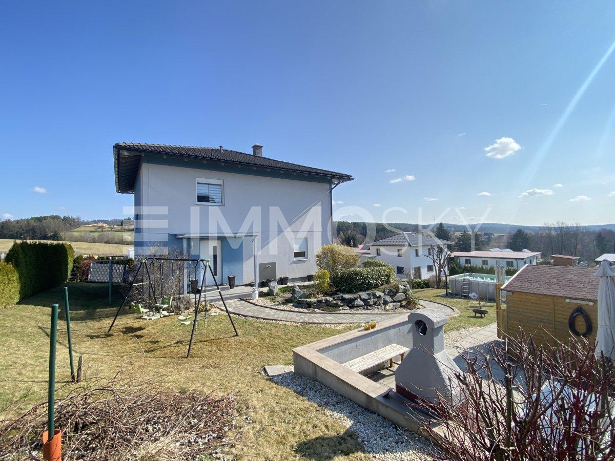 Dieses äußerst gepflegte Niedrigenergiehaus wurde im Jahr 2010 durch die Fa. Elk in Holzriegel-Bauweise errichtet. Es besticht durch eine helle, freundliche Atmosphäre und eine optimale Raumaufteilung. Das insgesamt 1000 m² große Grundstück bietet einen fertig angelegten Garten mit einer Holzhütte und einem Grillplatz. Die Wohnfläche von ca. 154 m² teilt sich wie folgt auf: Erdgeschoss Großzügige, offene Wohnküche mit Ausgang auf die Terrasse Garderobe WC Abstellraum Obergeschoss 4 Schlafzimmer (eines mit begehbarem Schrank) Badezimmer mit Wanne und Dampfdusche WC extra Darüber hinaus steht ein ca. 70 m² großer Keller mit Partyraum, Garage und Bad mit Dusche und WC zur Verfügung. Zusätzlich zur Beheizung mittels Luftwärmepumpe (kühlt im Sommer) kann ein Schwedenofen im Wohnbereich betrieben werden. Die hochwertige Einbauküche sowie die Sanitär-Einrichtungen verbleiben im Haus, ansonsten wird die Liegenschaft unmöbliert übergeben. Verfügbar ab sofort! Fordern Sie gleich weiterführende Informationen zu diesem Objekt an oder vereinbaren Sie Ihren persönlichen Besichtigungstermin! Ich freue mich auf Ihre Nachricht oder Ihren Anruf unter 0664/827 98 13! Mag. Andreas Gross Immosky Graz Schulen: Direkt in Wiesfleck befinden sich ein Kindergarten und eine Volksschule. Weiterführende Schulen (MS, Gymnasien, HTL) sind in den unmittelbaren Nachbarortschaften Oberschützen bzw. Pinkafeld vorhanden und in wenigen Minuten mit dem Schulbus erreichbar. Einkaufsmöglichkeiten: Im Ort versorgt ein Nah & Frisch - Geschäft die Bewohner mit Güter des täglichen Bedarfes. Gleich daneben befindet sich ein Gasthaus. Beides sind fußläufig leicht erreichbar. Öffentlicher Verkehr: Bushaltestellen binden den Ort an das öffentliche Verkehrsnetz an.