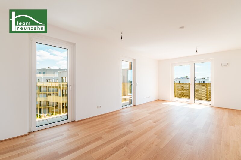 ?Hirschfeld ? Naturnah wohnen? Die gegenständliche Liegenschaft im Projekt ?Hirschfeld ? Naturnah wohnen? wurde im Jahr 2025 fertiggestellt und bietet Ihnen hochwertige Eigentumswohnungen und KFZ-Stellplätze. Die Wohnungen verfügen über 2-5 Zimmer und Wohnflächen von ca. 40m² ? 96m² zzgl. großzügigen Freiflächen von mindestens 9m². Das Projekt grenzt nördlich an ein idyllisches Wald- und Wiesengebiet und südlich an die Gerasdorfer Straße. Auf Grund der Lage des Gebäudes in zweiter Reihe ist ein ruhiges Wohnambiente garantiert. Durch die vorhandene Infrastruktur und Nahversorgung eignen sich die Wohnungen sowohl für Familien als auch für Singles. Der Marchfeldkanal ist fussläufig in ca. 10 Minuten und die U-Bahn-Linie U1 - Leopoldau mit dem Bus in ca. 15 Minuten zu erreichen. Folgende Annehmlichkeiten werden Sie nicht mehr missen wollen: provisionsfreier Verkauf sofort beziehbar hochwertige und energieeffiziente Ausstattung (Fussbodenheizung- und Kühlung über Geothermie/Wärmepumpe, Sonnenschutz,?) Bauausführung durch das renommierte Bauunternehmen ?Strabag? durchdachte Grundrisse und Raumhöhen von ca. 2,60 (Regelgeschoss) ? 2,80m (EG + DG) Umfassende Allgemeinbereiche (Kinderwagen- und Fahrradraum, Spielplatz, modellierte Spielwiese mit Bäumen, Gemeinschaftsraum..) Ausstattungsstandard: Beim gegenständlichen Projekt steht vor allem der Punkt ?Energieeffizienz? im Mittelpunkt. Demnach wurde der Niedrig-Energie-Haus-Standard mit der Klima-aktiv-Zertifizierung ?Silber? erreicht. Fussbodenheizung- und Kühlung über Geothermie/Wärmepumpe PV-Anlage am Dach Hauseigene SAT-Anlage Gegensprechanlage 3-fach isolierverglaste Kunststoff-Alu-Fenster inkl. elektrischer Raffstores Sicherheitstüren inkl. Reedkontakt im EG und DG für die Nachrüstung einer Alarmanlage Parkettboden Eiche Hochwertige Sanitärausstattung mit bodenebener, gefliester Dusche bzw. Badewanne (je n