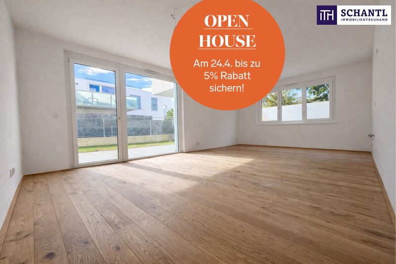 OPEN HOUSE 24.4.! Bis zu -5% Rabatt sichern! FERTIGGESTELLT! Naturnah + perfekt angebunden! 4-Zimmer-Gartenwohnung mit hochwertiger und nachhaltiger Ausstattung im DAS WEGL!