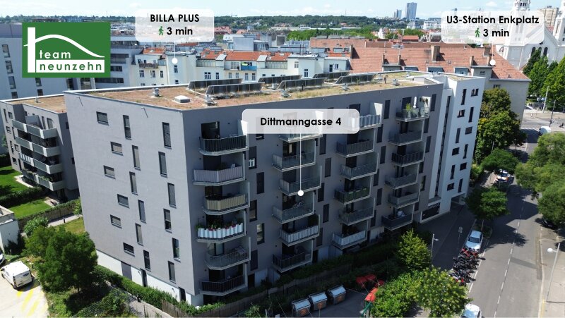 Zentral wohnen und dennoch die Ruhe genießen ? modernes Neubauprojekt in der Dittmanngasse 4 im Herzen von 1110 WienIn einer angenehm ruhigen Seitengasse gelegen und gleichzeitig nur wenige Minuten vom Enkplatz entfernt, vereint diese Wohnanlage die Vorteile des urbanen Lebens mit einer entspannten Wohnatmosphäre. Die U-Bahnlinie U3 ist in etwa 3 Gehminuten erreichbar und bringt Sie ohne Umwege direkt ins Wiener Stadtzentrum.Das Wohnprojekt überzeugt durch eine klare, zeitgemäße Architektur und ein durchdachtes Gesamtkonzept. Besonderer Wert wurde auf gut geschnittene Grundrisse, helle Räume und eine angenehme Wohnqualität gelegt. Großzügige Fensterflächen sorgen für viel Tageslicht, während viele Wohnungen über attraktive Freiflächen verfügen, die zusätzlichen Raum zum Entspannen bieten. Das Gebäude selbst punktet mit zahlreichen Annehmlichkeiten: Ein großzügiger, begrünter Innenhof mit Kinderspielplatz schafft eine angenehme Wohnatmosphäre. Zusätzlich stehen ein Fahrradraum, ein Kinderwagenabstellraum sowie ein Müllraum zur Verfügung. Jede Wohnung verfügt über ein eigenes Kellerabteil. Stellplätze in der hauseigenen Tiefgarage können optional angemietet werden.Die Wohnungen werden auf 5 Jahre befristet vermietet. Highlights auf einen Blick:U3 Enkplatz in ca. 3 Gehminuten erreichbar Sehr gute Nahversorgung (BILLA PLUS, Apotheke, Gastronomie in 3?5 Minuten) Verkehrsknoten Simmering in ca. 10?12 Minuten erreichbar Ruhige Seitengasse bei gleichzeitig zentraler Lage Herderpark & Braunhuberpark in ca. 5?8 Gehminuten Begrünter Innenhof mit Kinderspielplatz Tiefgarage optional verfügbar Fahrradraum, Kinderwagenraum & Kellerabteile Ausstattungsstandard:Fußbodenheizung Hochwertige Tischlerküchen inkl. Markengeräte (Zanussi) Edler Eichenparkettboden 3-fach verglaste Kunststofffenster Außenliegende Rollläden Video-Gegensprechanlage Glasfaseranschluss (Magenta & A1) Barrierefreier Zugang (Lift) Eigene Kellerabteile Die Ausstattung der Wohnungen entspricht modernen Ansprüchen: Fußbodenheizung sorgt für angenehmen Wohnkomfort, während hochwertiger Eichenparkettboden den Räumen eine warme und stilvolle Note verleiht. Die maßgefertigten Tischlerküchen sind mit Marken