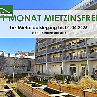 AKTION 1 MONAT MIETZINSFREI *gültig bei Mietanbotslegung bis zum 01.04.2026 *die Betriebskosten sind auch während der mietzinsfreien Monate zu entrichten Urban wohnen, grün leben ?…