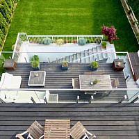 Hinweis: Zur Inspiration und Illustration wurden die Originalräume und die Terrasse virtuell mittels KI eingerichtet (Fotos…