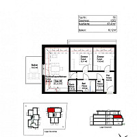 Die Wohnfläche von ca. 61 m² unterteilt sich in Vorraum, Bad, WC, möblierter Küche, Wohnzimmer mit Balkon sowie 2…