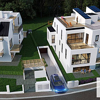 Das Erdgeschoss besteht aus einem lichtdurchfluteten offenen Wohn-, Koch- und Essbereich mit Zugang auf die Terrasse und in den Garten. Auf dieser Ebene befinden sich das Vorzimmer, ein Gäste-WC, der…