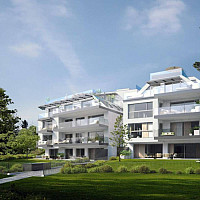LIVING GLANZING ist ein Zuhause für anspruchsvolle Menschen. Sattes Grün, zeitlos elegante Architektur, Panoramaweitblick und eine prachtvolle Allee in Richtung Stadt.