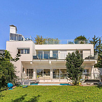 Über die Hermesstraße gelangt man in eine durch Ruhe und Harmonie geprägte Wohngegend, in der diese beeindruckende moderne Villa steht. Ein perfekter Vorgarten säumt die Wege zu den beiden…