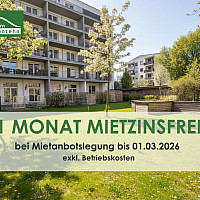 AKTION 1 MONAT MIETZINSFREI *gültig bei Mietanbotslegung bis zum 01.03.2026 *die Betriebskosten sind auch während der mietzinsfreien Monate zu entrichten Urban wohnen, grün leben ?…