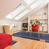 Ein kleines aber feines Studio im Dachgeschoß mit Platz für 1-2 Personen.Es hat einen großen Wohnraum, auf der einen Seite mit einem Doppelbett und bequemen Sitzgelegenheiten. Auf der anderen Seite…