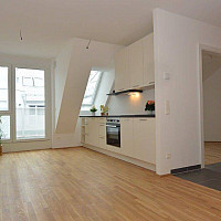 Die helle Wohnung hat ein sehr geräumiges Wohnzimmer mit Anbindung zur Küche und einem schönen freien Blick über die Dächer Wiens. Die Wohnung verfügt über ein separates Schlafkabinett…