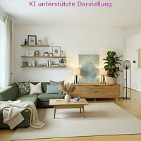 Hinweis: Zur Inspiration und Illustration wurden die Originalräume und die Terrasse virtuell mittels KI eingerichtet (Fotos…