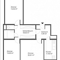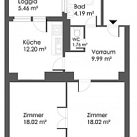 So finden Sie auf 51m² Wohnfläche einen Vorraum, ein Badezimmer…