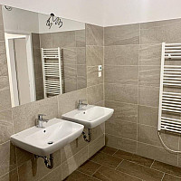 Separates WC, Bad mit Badewanne und Handtuchtrockner.