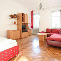 Vom Vorzimmer des Apartments gelangen Sie in alle 3 Zimmer des Apartments.Das erste Zimmer ist ein Wohn- / Schlafbereich mit Sitzgruppe, SAT-TV und einem Einzelbett.Bei dem zweiten Raum handelt es…