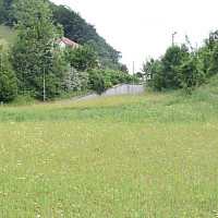 Flaches Grundstück mit einer kleinen Hangfläche Richtung Bahn.