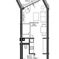Vorraum, Wohn-Schlafraum, Küche, Badezimmer mit Dusche & WC und Loggia.