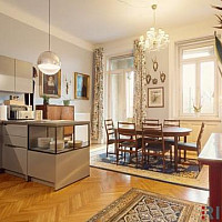 Diese im Dachgeschoß eines repräsentativen Palaisgebäudes gelegene Wohnung bietet folgende