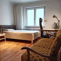 Das möblierte Privatzimmer ist ca. 18 m² groß, zum Innenhof ausgerichtet und sehr ruhig und hell. Es ist komfortabel eingerichtet mit einem Massivholzbett (140 x 200 cm), einem großen…