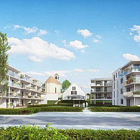 Den Rhythmen der bestehenden Gebäude folgend, eine Mischung aus sandsteinfarbenen Akzenten und vielen auflockernden Grünflächen: Beim Architekturwettbewerb eingereicht und als Siegerplanung…