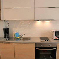Schickes, möbliertes Apartment mit komplett ausgestatteter Küchenzeile (Spülmaschine, Mikrowelle, Herd, Kaffeemaschine, Wasserkocher, Toaster, Geschirr und Besteck für mindestens 4 Personen). Zur…
