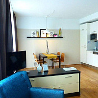 Das modern ausgestattete Apartment mit einer Größe von 45 qm eignet sich perfekt für Geschäftsreisende. Das separate Schlafzimmer mit Doppelbett bietet Ihnen hohen Wohnkomfort während Ihres…